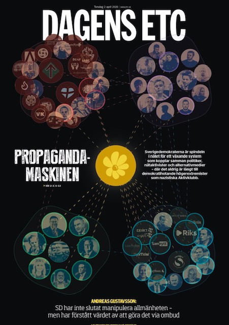 Men tillbaka till Dagens ETC. Senaste “bragden” är en kartläggning av något man konstruerat och kallar för “nät” i vilket Sverigedemokraterna påstås vara spindeln. Rubriken är “Propagandamaskinen” och jag kommer inte bjuda på klick till detta. Men vill ändå lyfta lögnmaskinen Dagens ETC och hur de med hjälp av skattemedel faktiskt kämpar för att göra Sverige till ett sämre, otryggare och fattigare land. Också diskussionen om hur skattemedel fördelas i Sverige seglar upp ännu en gång – då detta orättvisa, politiskt snedvridna system behöver göras om i grunden.