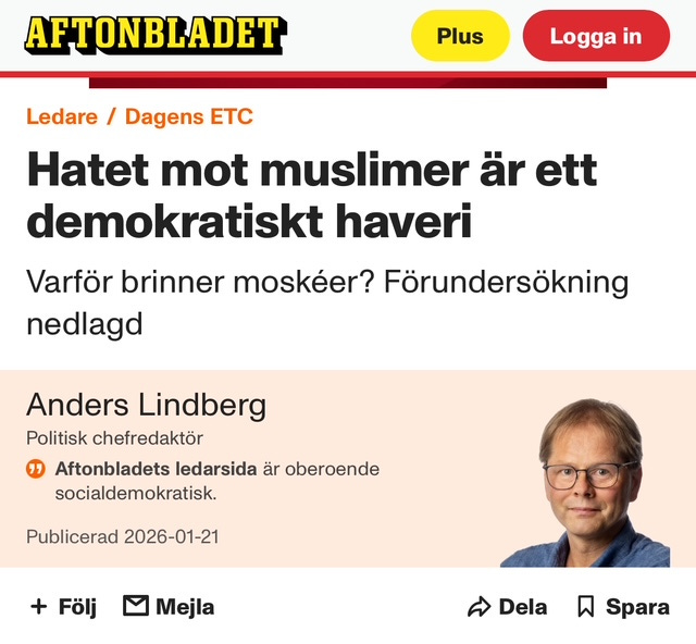 Därför behövs vi i de fria, oberoende medierna. Vi som inte längre har något att förlora. Vi som länge varnat för det här trots att det kostat oss mycket. Men som ändå står kvar, trots att de statligt stöttade medierna och public service alla tillsammans beter sig som ett politiskt parti valåret 2026, helt och hållet på islams sida. Mot jämställdhet, frihet och sunt förnuft.