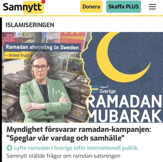 och svenska företag som IKEA gör allt de kan för att implementera muslimska högtider som något “svenskt”. Den som ifrågasätter, stämplas som islamofob.