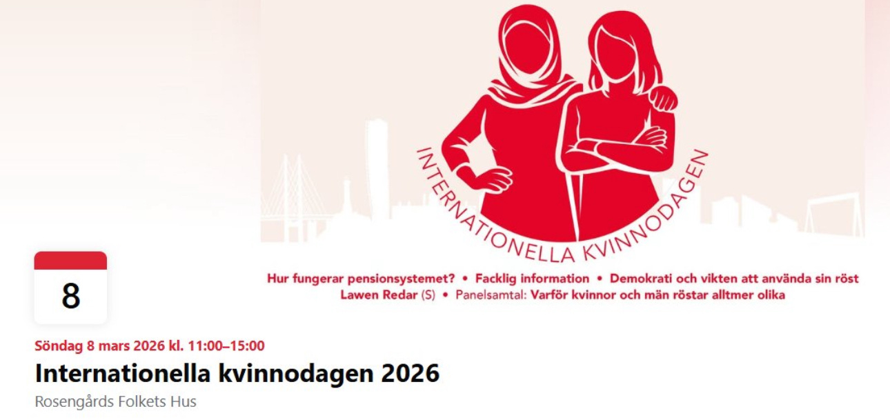 För islamiseringen flyttar fram sina positioner och normaliseras allt mer. Socialdemokraterna i Malmö har till exempel inga problem att göra reklam för ett event på självaste Kvinnodagen 8 mars med en stiliserad bild av en kvinna i hijab.